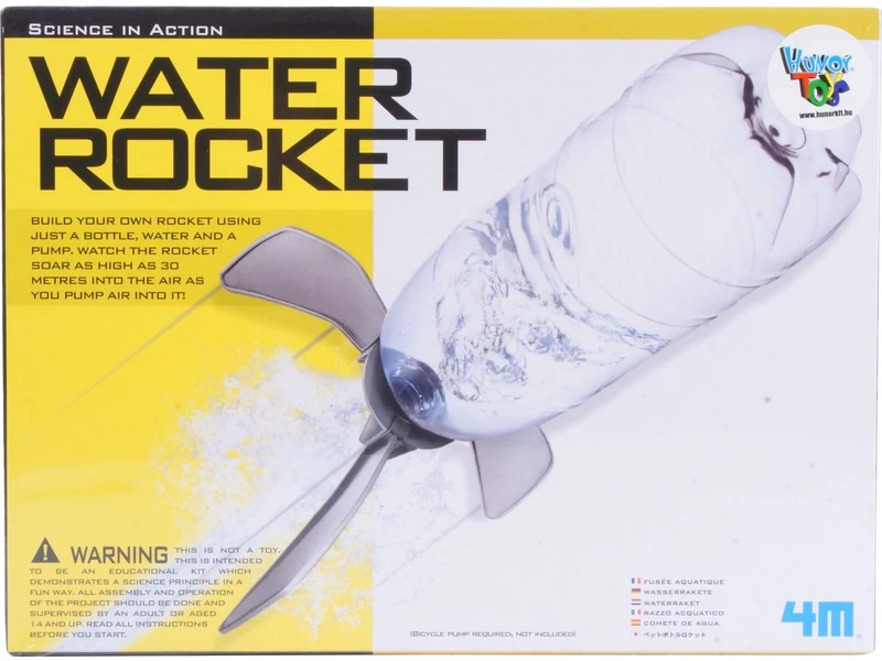 Működésben a tudomány - víz rakéta, összeállítható szett. Alkosd meg és röptesd a saját vízi rakétádat ezzel az oktató szettel. Tartalmazza az üveg rakéta elemeit, egy adaptert a kerékpárpumpához, és egy részletes leírást. Az összeállításhoz kerékpárpumpa szükséges, melyet a csomag nem tartalmaz!