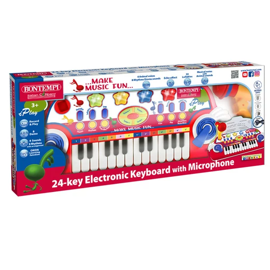 Fedezd fel a zenélés világát ezzel a 24 billentyűs álló szintetizátorral, amely mikrofonnal is felszerelt, így a gyerekek egyszerre játszhatnak zenét és énekelhetnek is! Ez az interaktív hangszer fejleszti a zenei érzéket és a kreativitást, miközben szórakoztató élményt nyújt. Könnyen kezelhető, tartós kialakítású, és ideális választás kis zenészek számára.