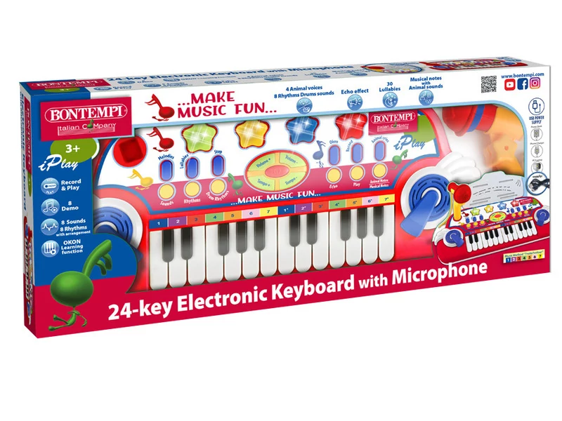 - Zenei fejlődés: A 24 billentyűs szintetizátor lehetővé teszi a gyerekek számára, hogy megismerkedjenek a zenei alapokkal, és fejlesszék ritmusérzéküket és kreativitásukat.