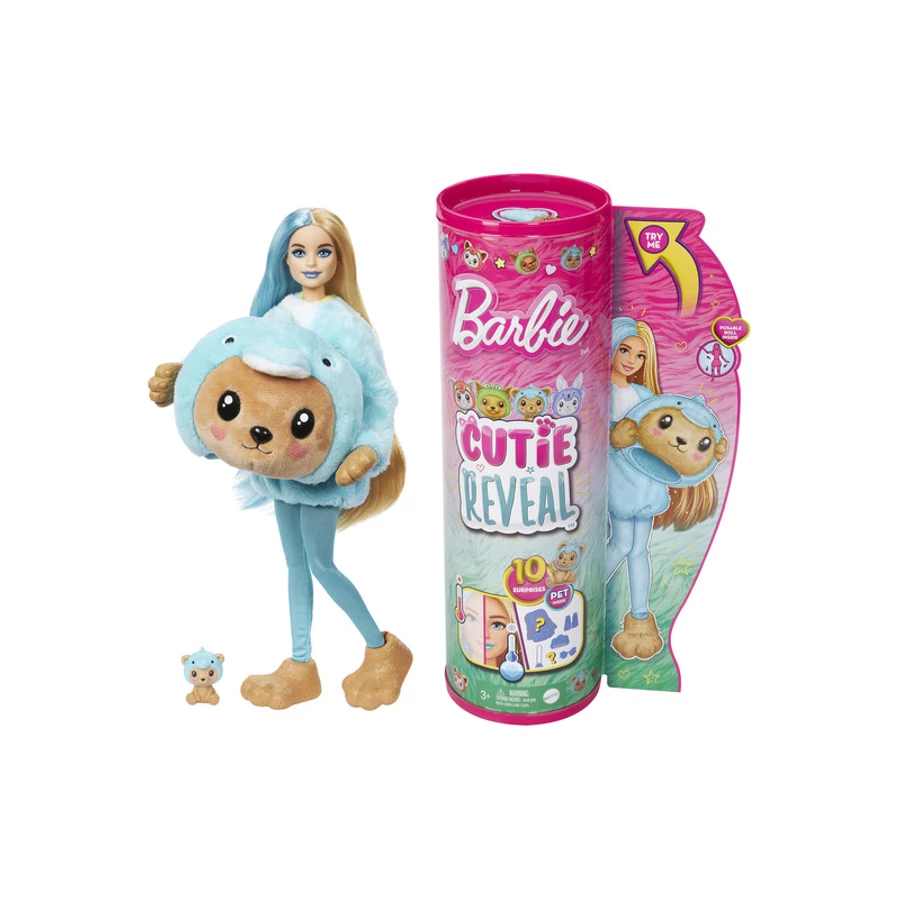 Barbie cutie reveal meglepetés baba - delfinkeFedezd fel a Barbie Cutie Reveal legújabb sorozatát, ahol a varázslatos állatjelmezek mögött rejtőző, hosszú hajú babák egy egész új játékélményt kínálnak. A 6. széria különleges tagjai között megtalálható a cuki vöröspandi, a békuci, a koalamaci és a delfinke, akik mind arra várnak, hogy a gyerekek puha kedvencévé váljanak. Minden készlet tartalmaz meglepetés kiegészítőket, köztük egy a karakterhez illő kis kedvencet, amely még izgalmasabbá teszi a felfedezést.Különösen figyelemre méltó a delfinnek öltözött maci jelmez, amelyből egy stílusos, részletekben gazdag baba lép elő. A több ponton hajlítható végtagoknak köszönhetően a gyerekek számos pózba állíthatják a babát, így rengeteg édes történetet eleveníthetnek meg. De a meglepetések itt még nem érnek véget: a hideg és meleg víz hatására a baba és a kis kedvenc kinézete is megváltozik, így újabb dimenziót adva a játéknak. A Barbie Cutie Reveal babák tökéletes választást jelentenek a kreatív és interaktív játékhoz, hiszen segítségükkel a gyerekek nem csak meglévő történeteket játszhatnak el, hanem saját kalandokat is kitalálhatnak, miközben fejlesztik kommunikációs készségüket és képzeletüket. Ne hagyd ki ezt a különleges sorozatot, amely garantáltan elvarázsolja a gyerekszobát!Csomagolás mérete: 10 x 10 x 32,5 cm.