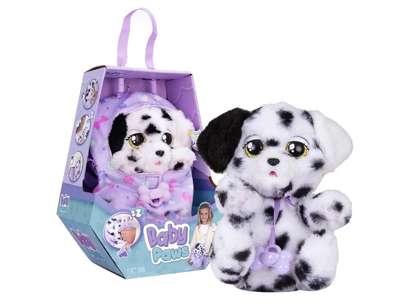 - A Baby Paws Dalmatian egy aranyos, fekete-fehér pöttyös kutyus, szuper puha szőrrel, így teljesen úgy néz ki, mint egy igazi kutya!