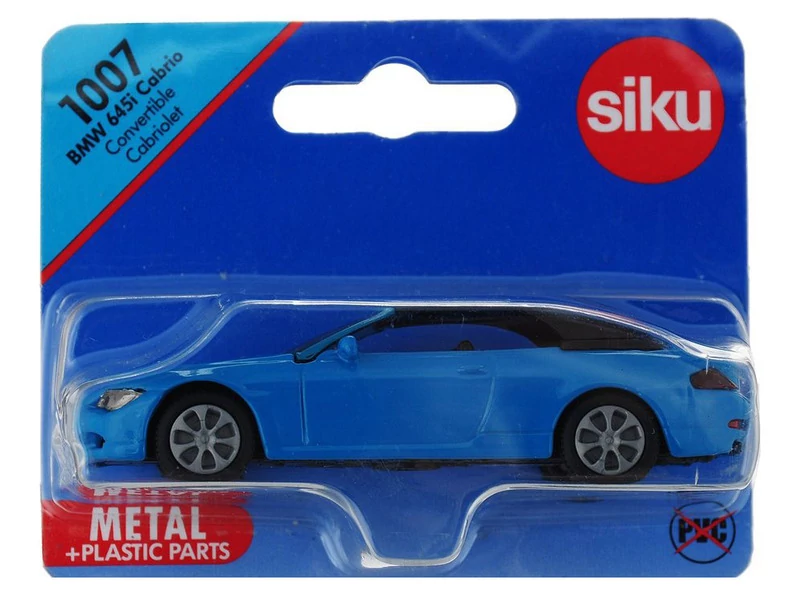 A(z) **BMW 645i Cabrio 1:55** – Siku BMW 645i Cabrio 1:55 Élethű kisautó, fém karosszériával és műanyag kiegészítőkkel felszerelve. Az autó a BMW 645i pontos kicsinyített mása. Csomagolás méretei: 10 x 4 x 8 cm. Színválaszték: Fehér, Piros >3 éves kortól