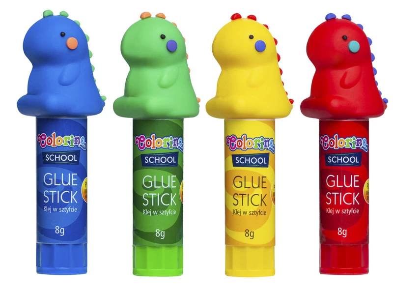 A(z) **Colorino Ragasztó dinoszaursz** – 4 színben kapható. Kérjük, hogy a megjegyzésben tüntesse fel, hogy melyik színt kéri. Colorino márkájú ragasztó stift (8 gr) dinó figurás kupakkal. Mérgező anyagot nem tartalmaz, textilből kimosható. Könnyen lehet vele ragasztani, gyorsan is szárad. 3 éves kor felett ajánlott.