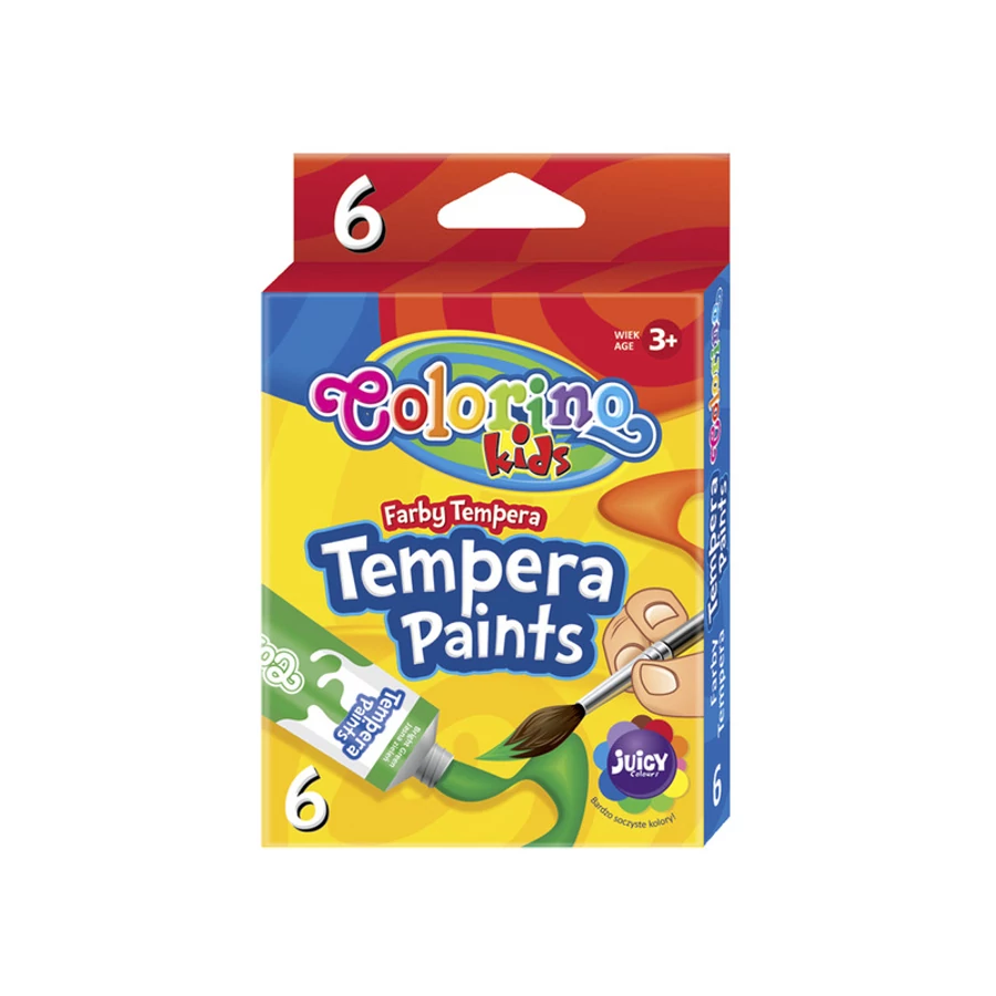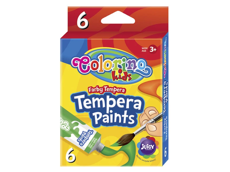 Colorino Tempera festék 6 db 12 ml-s kiszerelésben. Kiválló minőségének köszönhetően nagyon szép képeket lehet vele készíteni. Nagyon jó a fedőképessége, és gyorsan is szárad. 3 éves kortól ajánlott.