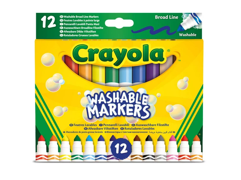A Crayola lemosható filctollak tompa és masszív hegyükkel ideálisak a kisgyermekek kezéhez. A csomag 12 filctollat tartalmaz, amelyek élénk és intenzív színekkel rendelkeznek. 3 éves kortól ajánlott.