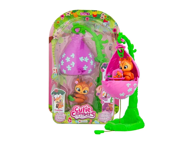 Cutie Climbers Cuki indázók S1 GyümifalókTöbbféle változatban. Kérjük hogy a megjegyzésbe tüntesd fel, hogy melyik változatot kéred.Ezek az édes állatkák imádnak indázni és nasizni! Kedvenc finomságuk alapján pedig 3 családba sorolhatók: Gyümifalók, Nasifalók és Sütifalók. Ha meghúzzuk a zinórt, az állatkák felmásznak az indán. Az indák ráadásul összekapcsolhatók, így a gyerekek kiegészítőként vagy kabalaként is használhatják őket. A hengeres készletben egy-egy indázó található kedvenc nasijával, míg a nagyobb szettek az indázó és kedvenc finomsága mellett egy virág alakú házikóval és egy bébiindázóval is kedveskednek a gyerekeknek.