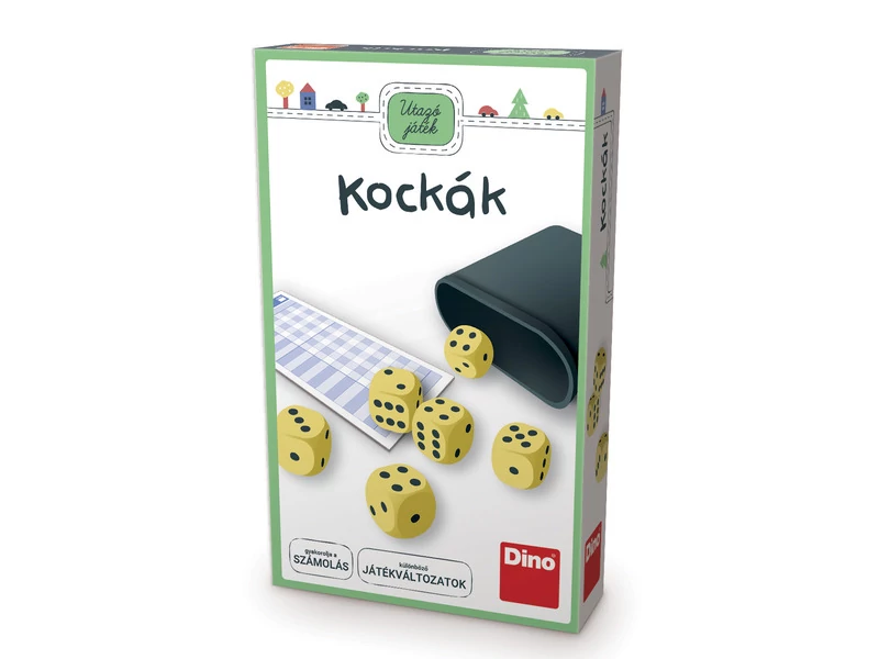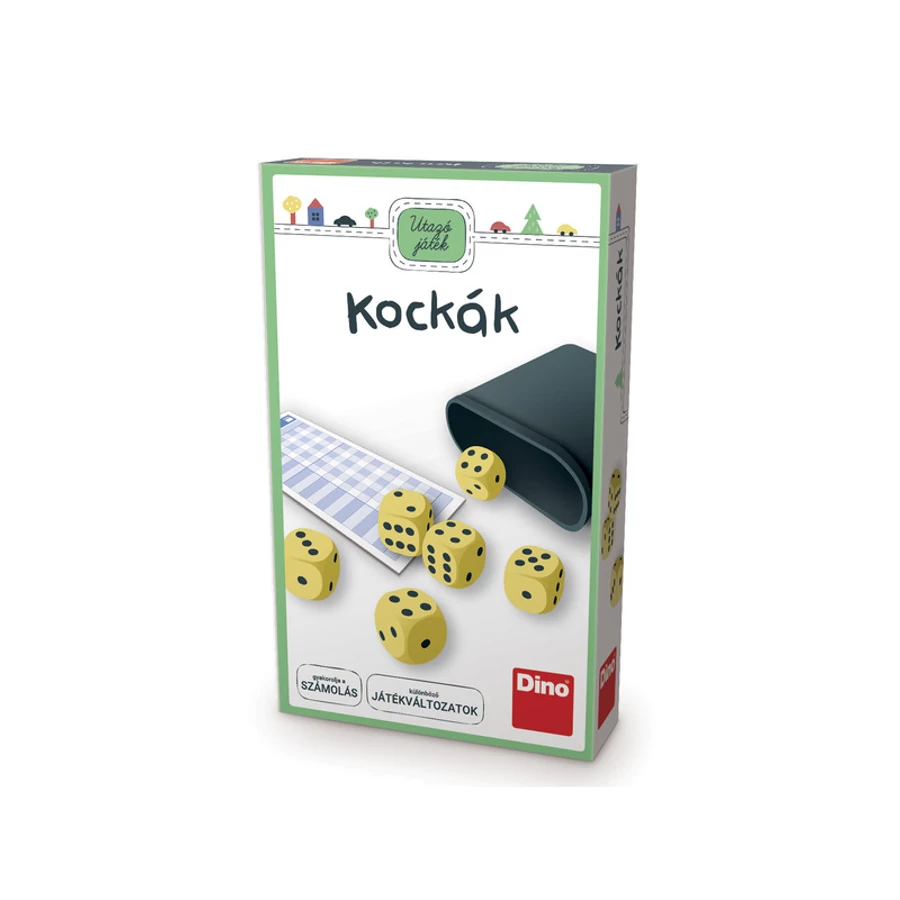 Dino Utazó játék- KockákJátékosok száma: 2 + játékos, Korosztály: 7 éves kortól ajánlott,Unod a hosszú utazásokat? Ez a kockajáték remek elfoglaltság az unalmas utak felpezsdítésé-hez. Bárhová magaddal viheted, és többféle játékot is játszhattok vele, akár egyedül is. A kockajátékok rendkívül sokoldalúak, hiszen segítségével gyakorolhatjuk a számolást, de segít fejleszteni a stratégiai gondolkodást és fejleszti a tervezés készségét. Kicsik és nagyok egyaránt élvezik, hiszen számtalanjáték kitalálható a már ismert, klasszikus kockajátékok mellett. Például játszhatjuk, hogy el kell érni egy kitűzött számot, mondjuk 100, aki hamarabb eléri, az nyer. Vagy kijelölünk egy számot, amit nem szabad kidobni, ha valaki mégis kidobja, az kimarad. A lehetőségeknek csak a képzelőerőtök és a kreativitásotok szab határt.A doboz tartalma: