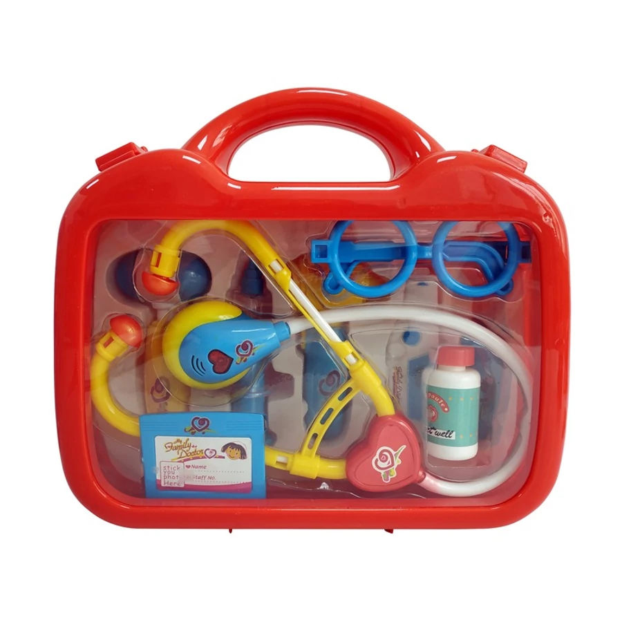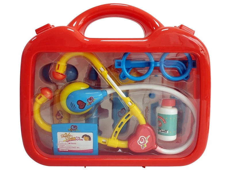 A(z) **Doktor szett, zenél, hangot ad** – A Doktor készlet táskában hanggal minden orvosi eszközt tartalmaz, amivel meg tudod vizsgálni a pácienseket, és meg is tudod őket gyógyítani. A dobozban reflex kalapácsot, sztetoszkópot, fülvizsgálót, fogtükröt, szemüveget, fecskendőt és gyógyszert is megtalálsz, a készletben lévő névtáblára a saját nevedet, és sorszámodat is meg tudod adni. A sztetoszkóp hangot ad ki magából, a reflex kalapács világít. A játék LR44 gombelemmel és LR1130 gombelemmel működik, a csomagolás az elemeket tartalmazza. A csomagolás méretei: 27 x 9 x 24 cm. > 3 éves kortól