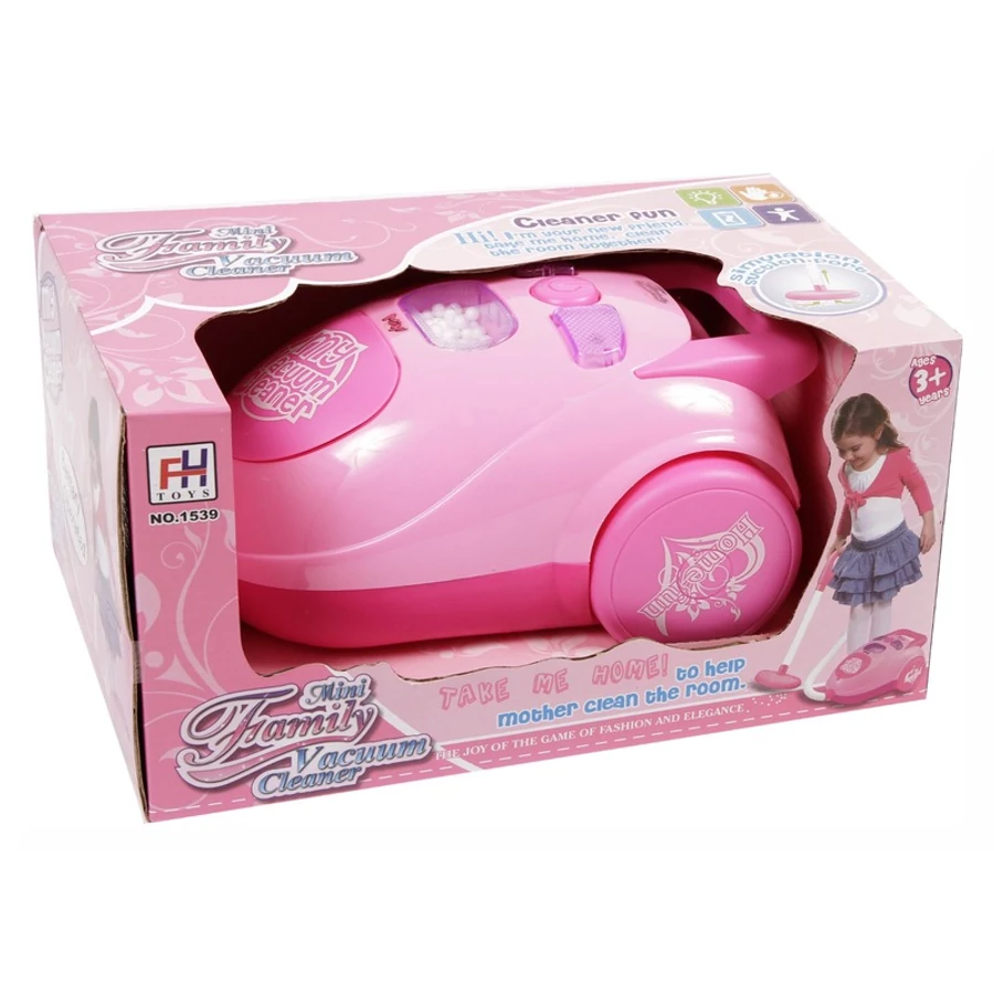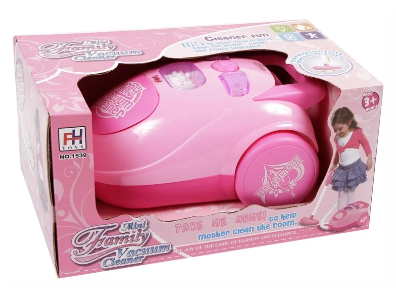 A(z) **Elemes porszívó - rózsaszín** – A rózsaszín Elemes porszívó 3 db AA ceruzaelemmel működik, a csomagolás az elemeket nem tartalmazza. Csomagolás méretei: 27 x 16 x 14 cm. > 3 éves kortól