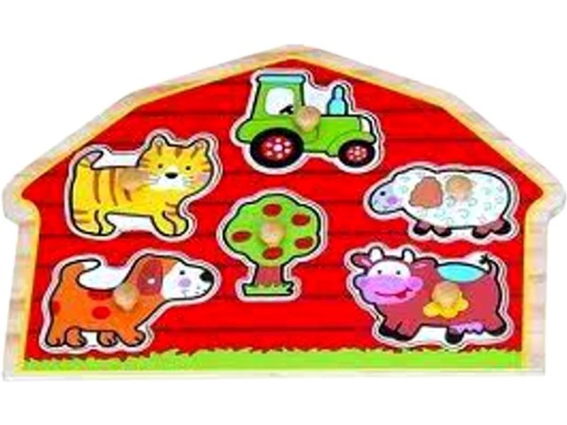 A(z) **Farm 6 darabos fa puzzle** – A Farm 6 darabos fa puzzle egy tanyasi gazdaságban élő állatokat, cicát, kutyát, bárányt és bocit, valamint egy traktort és egy almafát ábrázol. A mozaikdarabokat a keretbe kell beilleszteni. A puzzle méretei: 30 x 22 x 2 cm. > 3 éves kortól.