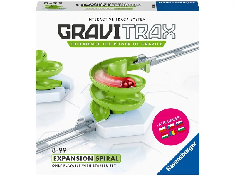 Bővítsd pályarendszeredet izgalmas részletekkel! A Gravitrax spirál készlettel most a csavaros forgásé lesz a főszerep. Építsd meg a zöld spirált a részletes leírás segítségével és figyeld meg, hogyan haladnak végig az ezüstszínű golyók a pályán! A három részből álló spirál és a 6 db különböző méretű sín tökéletesen illeszkedik a többi Gravitrax elemhez. A pályarendszer megtervezése után csak össze kell építened a részeket, hogy egy igaz innovatív és interaktív kalandban legyen részed. Ha érdekel a fizika és a kinetika világa, ez a játék Neked való lesz. Juttasd el a golyót a célig a gravitáció segítségével. A zöld és szürke színvilág és az lenyügöző részletek biztosan meg fognak ihletni újabb pályarendszerek építésére. A játék tartalmazza a csavaros spirál elemeit, a 6 darab sínt és a pontos leírást. A pályarendszer megépítését 8 éves kortól ajánljuk. A készlet mérete 17,8 x 17,8 x 2,5 cm.