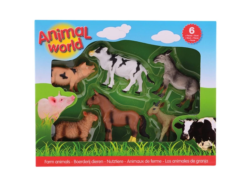 Háziállatok dobozban 6 dbItt az alkalom, hogy megismerkedj a tanyasi állatokkal. Az állatfigurák jól beleillenek az apró kezekbe és számtalan játék szereplői lehetnek. Hat boldog haszonállat vár, amelyekkel órákig játszhatsz. Anyaga: műanyag. Dobozban kapható. 3 éves kortól ajánlott