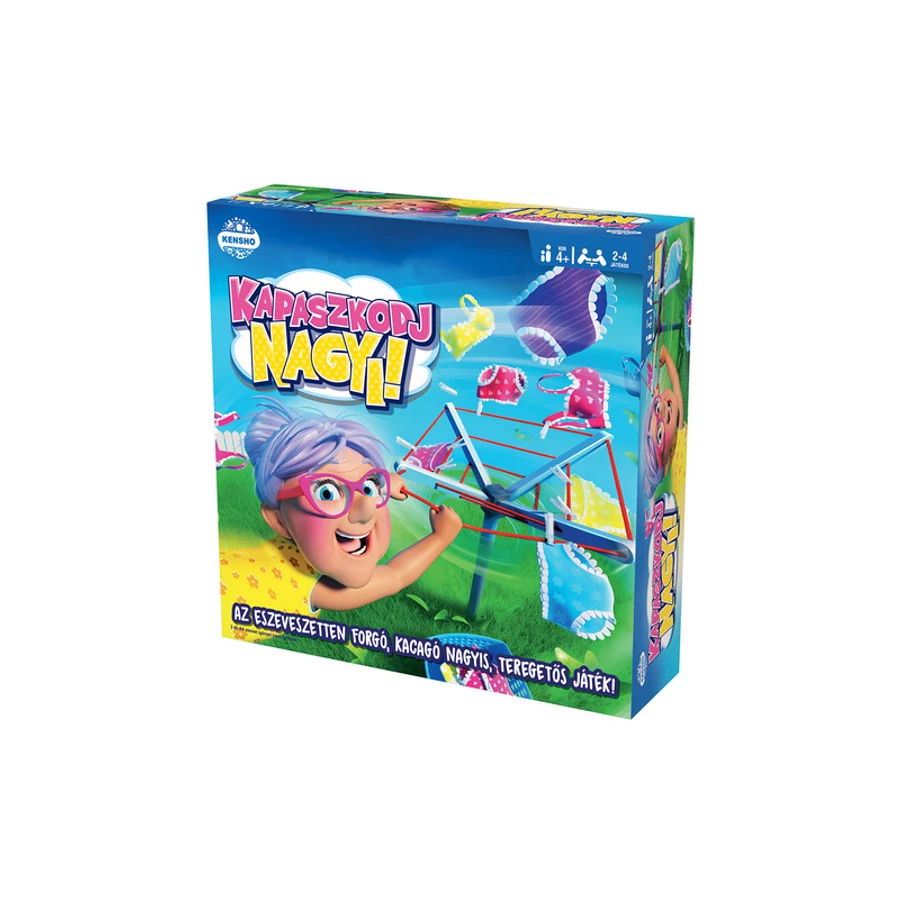 A Kapaszkodj nagyi! egy vicces és izgalmas társasjáték, mely az egész család számára szórakoztató lehet. A játék célja egyszerű: segíteni kell a nagymamának a ruhák kiteregetésében, viszont az időjárás nehezíti a körülményeket. A dobókockán 4 db időjárásjelzés található: nap, fehér felhő, esőfelhő és tornádó. A tornádó esetében a teregető talpán lévő szürke kapcsolót kell megnyomni, ekkor a \tornádó\ hatására elkezd forogni a ruhaszárító, ha szerencséd van a ruhák és a nagymama is a teregetőn marad. A játék végén az nyer, aki elsőként függeszti fel a ruhaszárítóra mind a 4 ruhadarabot.