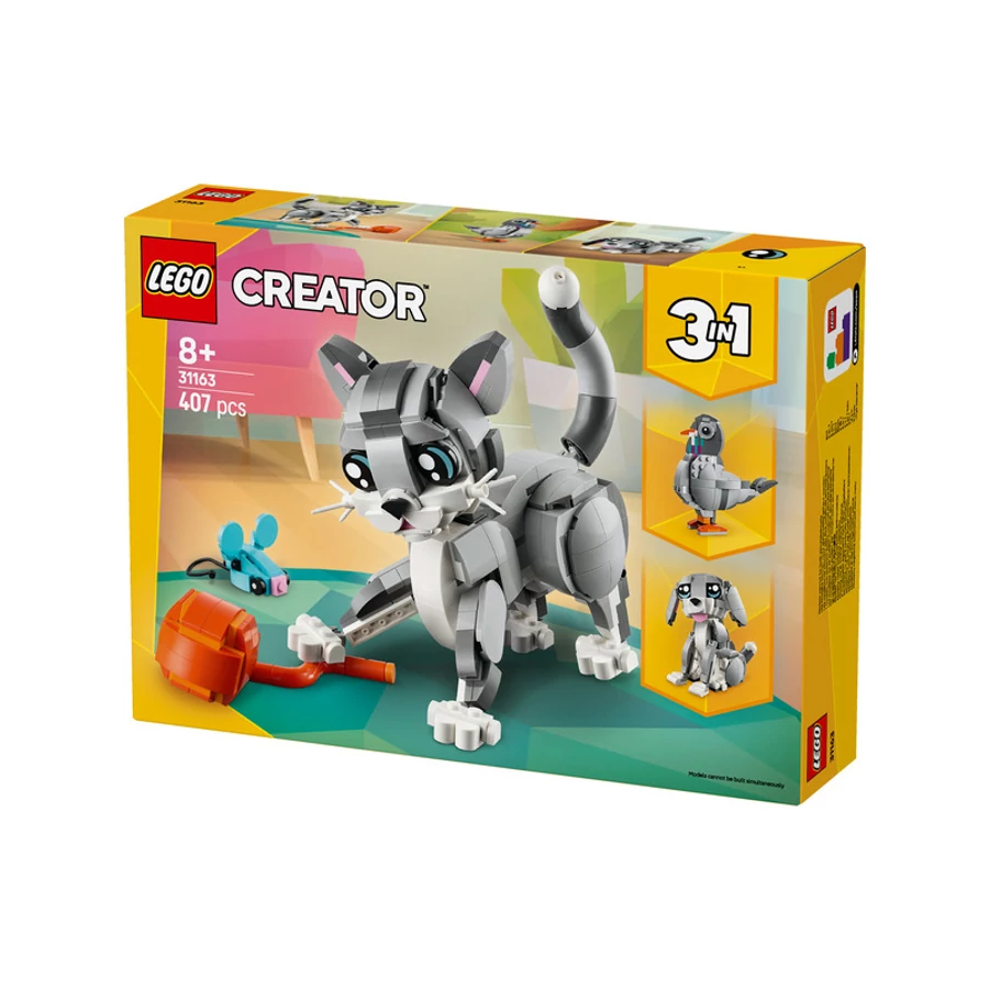 LEGO Creator 31163 Játékos cicaLepd meg a kisállatrajongókat az aranyos LEGO® Creator 3 az 1-ben Játékos cica (31163) építőszettel! Ez a házikedvences játékszett tartalmaz egy aranyos játék macskát, amelynek beállítható a feje, a füle, a farka, és a lába, továbbá olyan kiegészítők tartoznak hozzá, mint az etetőtál, a játék egér és a gombolyag, hogy a gyerekek sok vidám történetet játszhassanak el. A lányok és fiúk 3 különböző, állatos LEGO játékkészletet építhetnek meg ugyanazokból a kockákból: egy beállítható játék macskát, aki ülni, állni és csapni tud, egy beállítható, aranyos kutyafigurát játék csonttal, és egy játék galambot kenyérmorzsával. Mindhárom jelenet remek LEGO ajándék a gyerekeknek, hiszen vidáman játszhatnak velük, és ki is állíthatják őket. A LEGO Creator 3 az 1-ben szettek minden dobozban 3 különböző építési lehetőséggel inspirálják a gyerekek képzelőerejét, hiszen izgalmakkal teli építés, átépítés és újraépítés vár rájuk. A 3 az 1-ben készletek olyan választékot kínálnak, amellyel a gyermekek hódolhatnak a legfőbb szenvedélyeiknek, mint például a szupergyors járművek, a lenyűgöző állatok vagy a részletgazdag házak. Fontos, hogy egyszerre csak egy modellt lehet megépíteni!