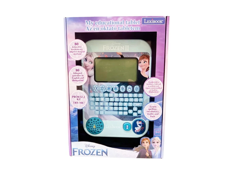 A Lexibook Jégvarázs kétnyelvű (magyar és angol) oktató tabletjével a népszerű mese rajongói játékos formában fejleszthetik készségeiket. A gyerekek megismerkedhetnek a számok világával, a betűkkel, egyes hangszerekkel valamint gyakorolhatják az írást és fejleszthetik logikájukat is. Az eszközön apró képek, feliratok, piktogramok segítik a könnyebb tájékozódást. A hangerő állítható. Méret: kb. 24 x 2 x 35 cm Tartalom: 1 db tablet, elemek A játék elemmel működik (3 x AAA). Az elemek nincsenek benne a csomagban.