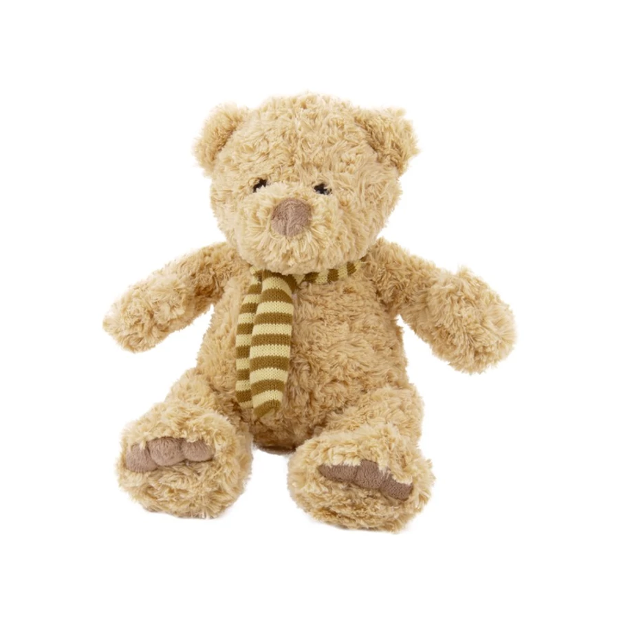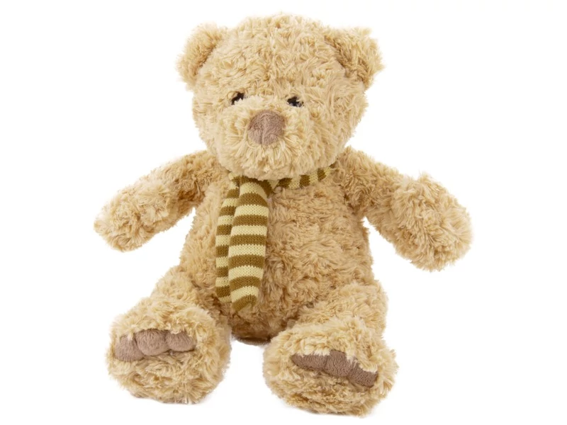 Bozontos mackó figura, csíkos sállal a nyakában! A barna Mackó plüssfigura sállal egy kisebb méretű puha medve, göndör szőrrel borítva. A mackó egy sárga-barna csíkos sálat hord, a plüssfigurát bárhova magaddal viheted, és simogathatod is. A barna Mackó plüssfigura sállal mérete: 25 cm.