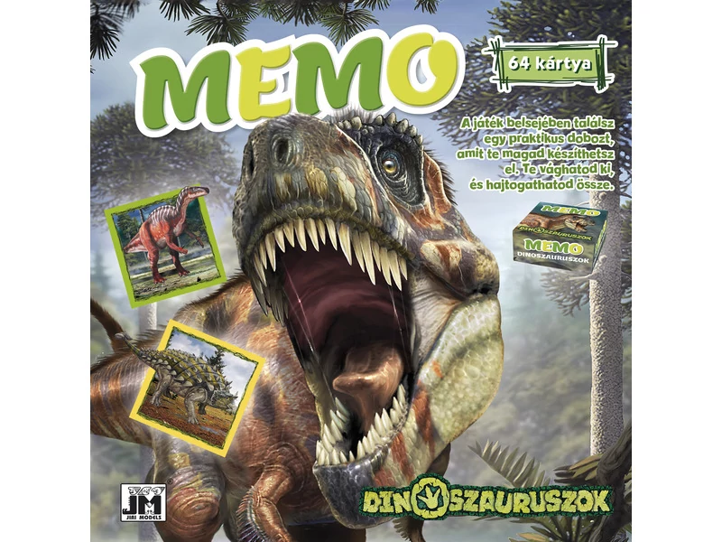 Memória fejlesztő könyv dinoszaurusz képekkel. 64 kártya található a könyvben, 4 színező oldal. Illetve a könyv végében egy kivágható doboz forma, amit gyermeke kivág, megragaszt, s a kártyákat bele tudja tenni. A memória kártyákat így biztonságosan tudják magukkal vinni például kirándulásra. Memória játék: A játékban tetszés szerinti számú játékos vehet részt, de legalább kettő. Jól keverjétek meg a kártyalapokat, majd képpel lefelé helyezzétek az asztalra. Sorsoljátok ki, hogy ki kezdje a játékot. A kezdő játékos fordítson fel két lapot. Ha párt talál, akkor azt tegye maga elé és folytassa a játékot. Ha nem talált egyformát, akkor a lapokat tegye vissza a helyükre, és most már a következő játékos fordít fel két lapot. A játék akkor ér véget, ha minden lap elfogy az asztalról! Számoljátok össze ki találta meg a legtöbb párt: az a memória bajnoka.