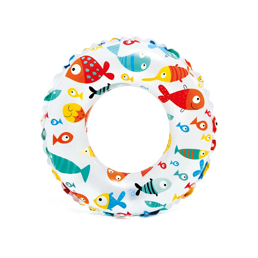 A(z) **Mintás 51 cm-es úszógumi** – A mintás úszógumi Az úszógumi biztonsági szeleppel fújható fel. Felfújt átmérő: 51 cm. A játékok külön kaphatóak. > 3 éves kortól > Intex