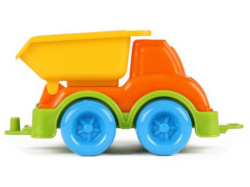 A(z) **Műanyag dömper - narancssárga, 11 cm** – A narancssárga Műanyag dömper méretei: 11 x 6 x 6 cm. > 3 éves kortól