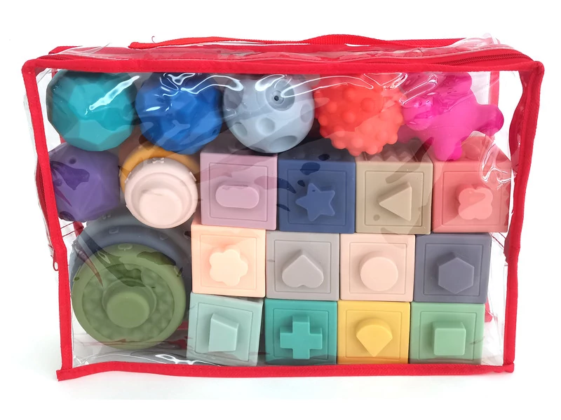 Puha babakockák, 24 db 610600688Fedezd fel a babák számára kifejlesztett Puha babakockák varázslatos világát! Ez a 24 darabos készlet ideális választás a legkisebbek számára, hiszen a kockák puha anyagból készültek, így biztonságosak és könnyedén megfoghatók a pici kezek számára. A különböző élénk színek és formák játékosan fejlesztik a látást, a tapintást és a finommotoros készségeket, miközben a kockák egymásra helyezésével a babák térérzékét is támogatják. Ez a készlet tökéletes első játék, amely biztonságos, szórakoztató és fejlesztő élményt nyújt. Kiváló ajándék babáknak és kisgyermekeknek egyaránt!