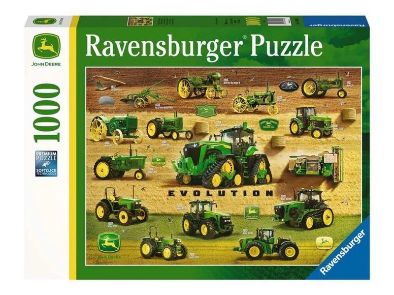 A(z) **Puzzle 1000 db - Deere Legacy** – A Ravensburger kiváló minőségű termékei mögött több évtizedes puzzle-gyártási tapasztalat áll, mely garantálja a felejthetetlen puzzle-élményt. A kiváló termékminőség mellett a 2D-s és 3D-s kirakók rendkívül széles választékát nyújtja. A minőség iránti szenvedély, a részletekre való odafigyelés és a motívumok hatalmas választéka teszi a Ravensburger kirakókat olyan egyedivé. Kínálatában kezdőktől a profikig mindenki megtalálja a számára tökéletes puzzle-t! A Ravensburger 1000 db-os - John Deere Evolution című puzzle a traktorimádó gyermekek és felnőttek kedvenc kirakója. A jellegzetes zöld színű mezőgazdasági és munkagépek múltját és jelenét láthatjuk a kirakott képen. Kirakott kép mérete: 70 cm x 50 cm.