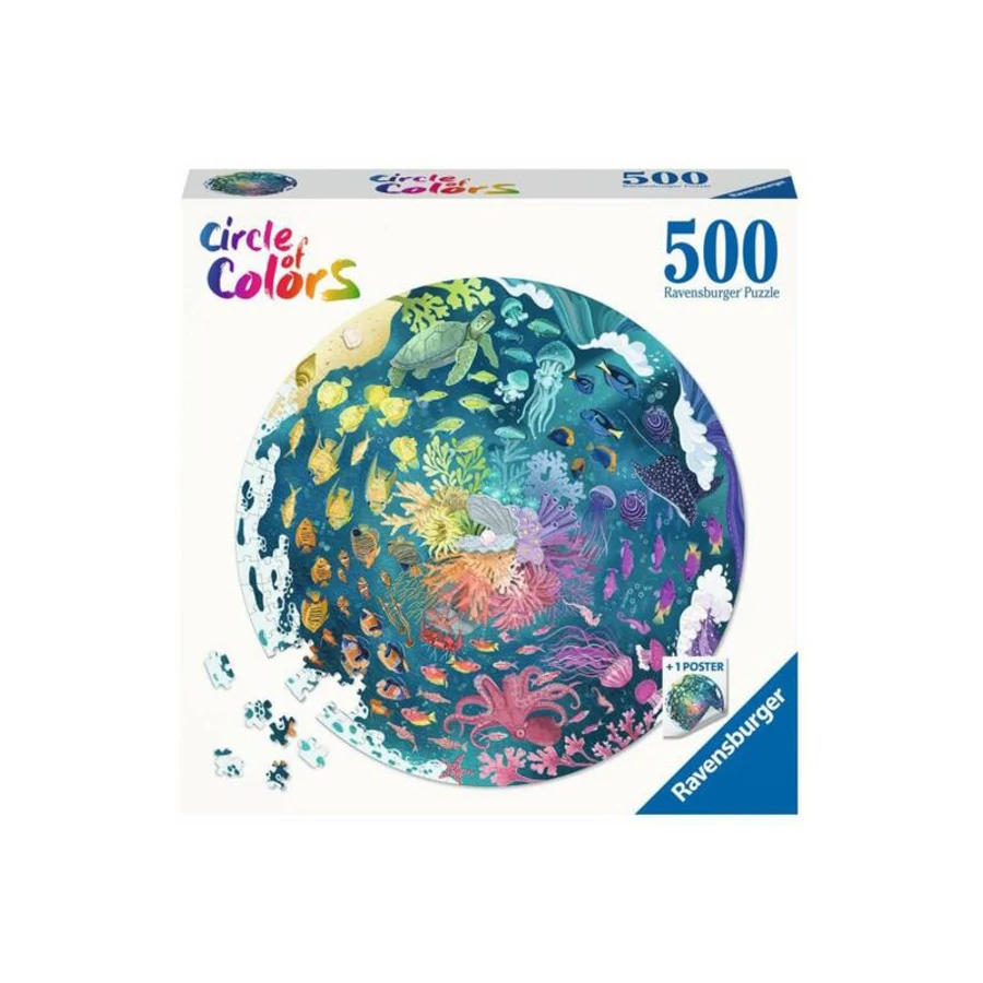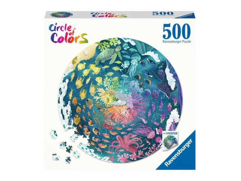A Ravensburger 500 db-os kör puzzle - Óceán képén a világ legnagyobb vízének a színes és változatos élővilágát láthatjuk.