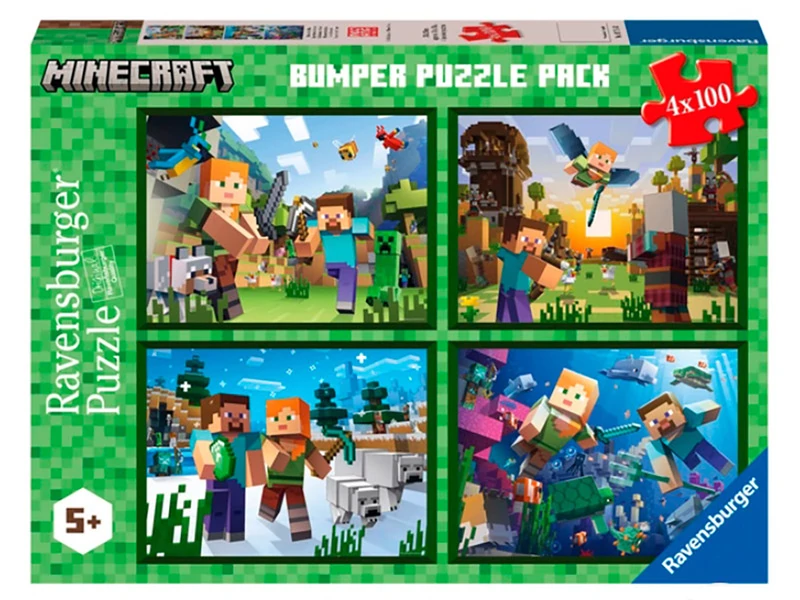 Puzzle 4x100 db - Minecraft A több, mint 120 éves gyártói tapasztalat és a fokozott figyelem, amit a részletekre fordítanak, garantálja a minőséget. Puzzle képeik, az általuk kizárólagosan kifejlesztett, extra vastag, vászon strukturált kartonpapírból készülnek. A vágószerszámok gondos tervezése és kézzel történő kialakítása garantálja a tökéletes illeszkedést és azt, hogy nincs két egyforma puzzle darab. A puzzle kirakó klasszikus ügyességi és logikai fejlesztő játék. Fejleszti a kézügyességet, próbára teszi a logikát, a türelmet, a kitartást és összetett látásmódra sarkall. Gyermekeknél kiemelt szerepe van a koncentráció fejlesztésében, de a finommotorikára gyarkorolt jótékony hatása is megkérdőjelezhetetlen. Garantáltan kikapcsolja az egész családot ez a klasszikus beltéri játék, az ezer kis darab összeillesztése akár több estére is lefoglalja az egész családot, minőségi időt töltve együtt.
