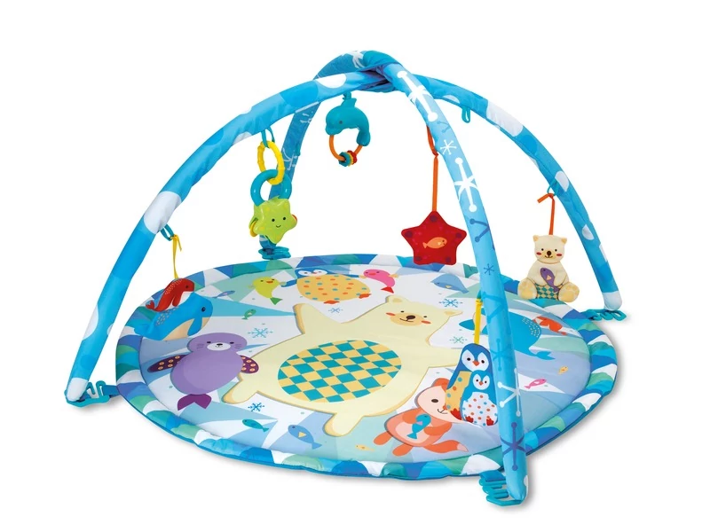 A(z) **Sarkvidéki bébi játszószőnyeg kupolával -0843-NI-** – A Sarkvidéki bébi játszószőnyeg kupolával egy állatokkal díszített puha szőnyeg, amin a baba pihenhet és játszhat. A lógó játékok csörgő-zörgő hangot adnak ki magukból, a kupola mozgásra ingerli a babát, erősíti az izomzatot és a végtagokat is. A kupola levehető a játszószőnyegről. Életkor: 0 - 1 éves korig
