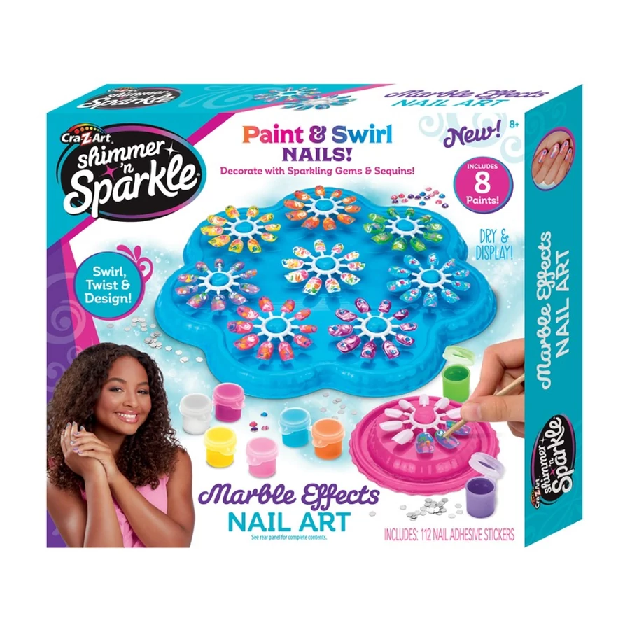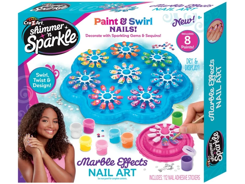 A Cra-Z-art Shimmer ‘n Sparkle kollekciójának “Márványos körmök” készlete mindent elhozott neked amire szükséged lehet, hogy művészi szintre emeld a körömfestést. Végtelen körömdekorációs lehetőségek egyetlen kreatív készletben.