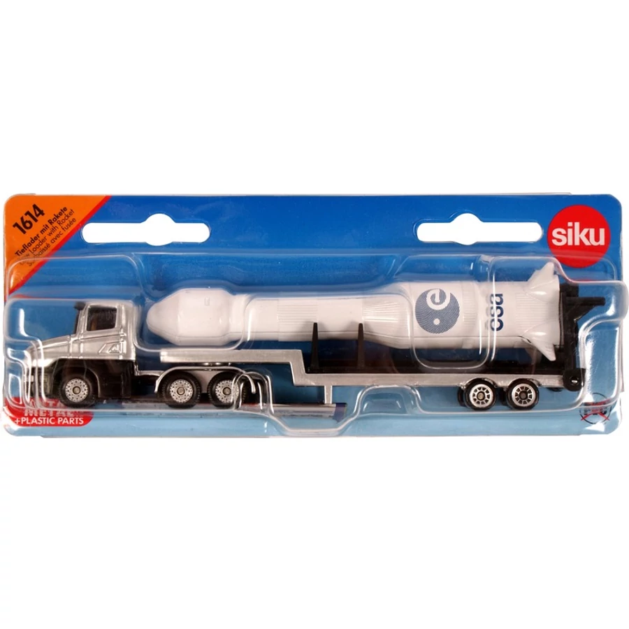 Vidd el a rakétát a kilövőállomásra! A Siku: kamion rakétás utánfutóval 1:87 készletben egy modern kamiont találsz, utánfutóval és egy űrrakétával! A rakétát biztonsággal tudod szállítani az utánfutón, de ha célba értél vele, kilőheted az űrbe! A kamion és a rakéta fém és műanyag felhasználásával készült, a készlet együtt használható más Siku 1:87 méretarányú készletekkel is. Csomagolás méretei: 19 x 4 x 8 cm.
