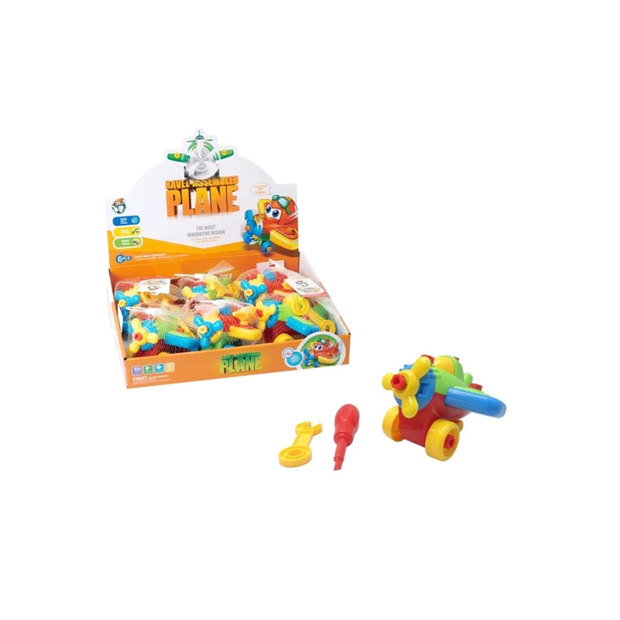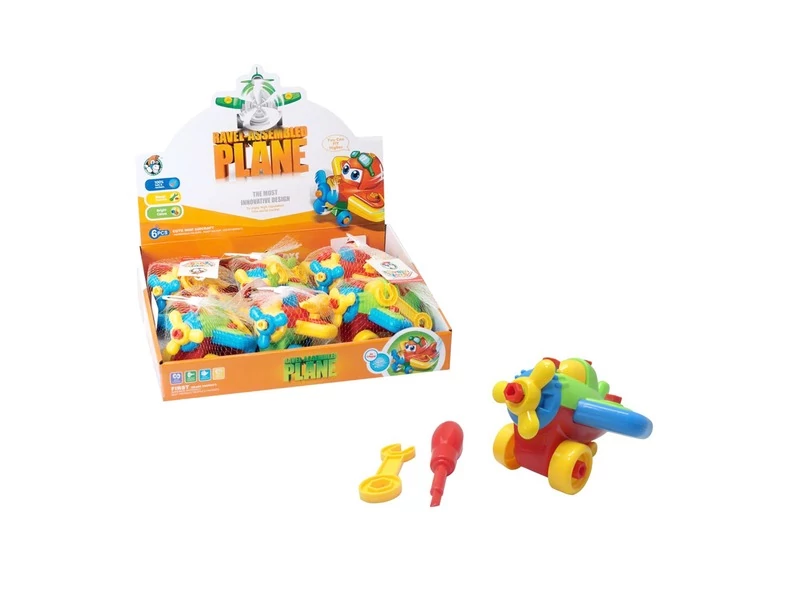 Szerelj össze egy vagány repülőgépet csavarhúzóval és villáskulccsal! A szerelhető jármű - repülőgép készletben egy színes, szétszedhető műanyag propelleres repülőt találsz, szerszámokkal. A csavarozást el tudod sajátítani a készlettel, a játék nagyon jól fejleszti a kézügyességet. Repülőgép összerakott méretei: 14 x 14 x 10 cm.