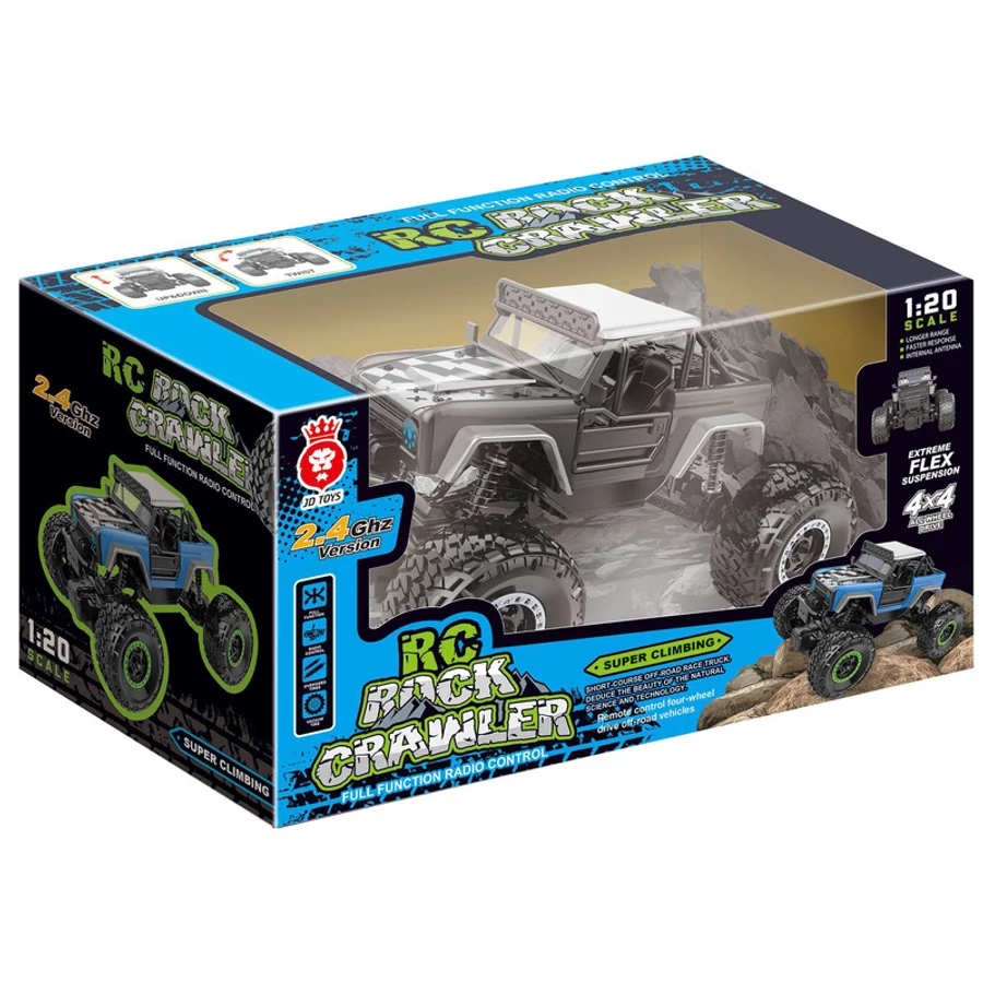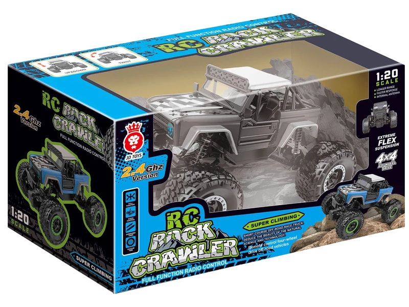 Mászd meg a legmagasabb hegyeket távirányítós autóddal! Ezzel a sziklamászó terepjáróval most új kalandokat élhetsz át. Csodáld meg járgányod 1:20 méretaránnyal elkészített kialakítását, mely tökéletesen követi az eredeti jármű ismertetőjegyeit. A rugós váznak és a vastag abroncsoknak köszönhetően, távirányítós autód könnyedén halad a legnehezebb terepeken is. 2,4 GHz frekvencián való kommunikálásának köszönhetően pedig akár 40 méter távolságig is tudod irányítani vagány járművedet. A 4 kerék meghajtás segítségével könnyedén fel tud gyorsulni maximum sebessége pedig 10 km/h. Ha az autó a nagy száguldozások után lemerült, a játékhoz tartozó töltővel pár óra alatt könnyedén feltöltheted. Alkoss izgalmas történeteket új sziklajáróddal és teszteld strapabíróságát! A játék tartalmazza a távirányítós autót, a távirányítót és a hozzá tartozó töltőt. A távirányító elemmel működik, melyet a készlet nem tartalmaz. A játékot 6 éves kortól ajánljuk.