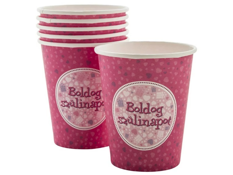 Boldog születésnapot feliratú 6 db-os papír pohár 2 dl