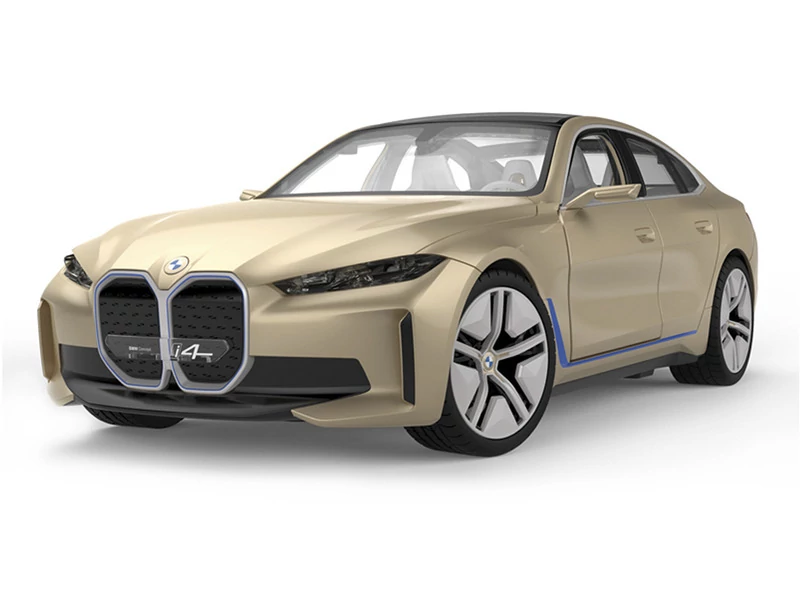 A BMW I4 Concept autó autentikus autóstílusú, fröccsöntött karosszériával és független felfüggesztési rendszerrel.