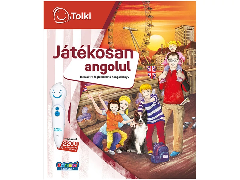 A Tolki - Játékosan angolul interaktív hangoskönyv elsősorban 5-12 éves korosztálynak készült, de gazdag szókincse, anyanyelvű narrátorai és tematikus felépítése miatt akár a nyelvvizsgára készülők számára is hatékony segítség lehet. A könyvhöz tartozó hanganyag összeállításánál az volt a szempont, hogy a mindennapi életben használatos szavakat és kifejezések kerüljenek a középpontba. A Tolki - Játékosan angolul interaktív könyv nyolc oldalpárján a következő témák szerepelnek: