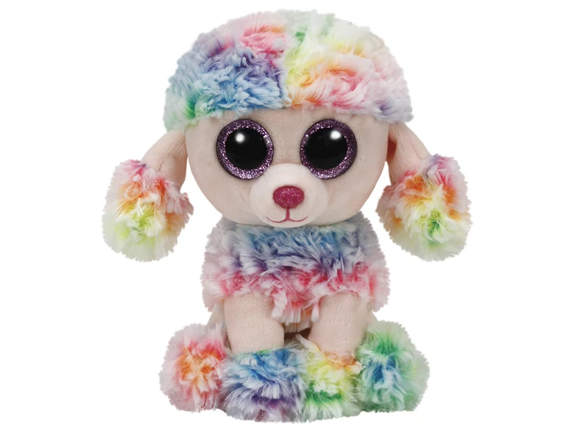 A puha tapintású Rainbow pudli plüssfigura minden gyerek kedvence! Szivárványos és bolyhos bundája és az óriási csillogó szemei teszik különlegessé ezt az aranyos pudlit! Gyűjtsd össze a többi Ty Beanie Boos plüsst és játszatok együtt a barátaiddal! A pudli leírásából, amit a csomagban találtok megtudhatjátok Rainbow születésnapját és egy verset is olvashattok. Mérete: 15 cm.