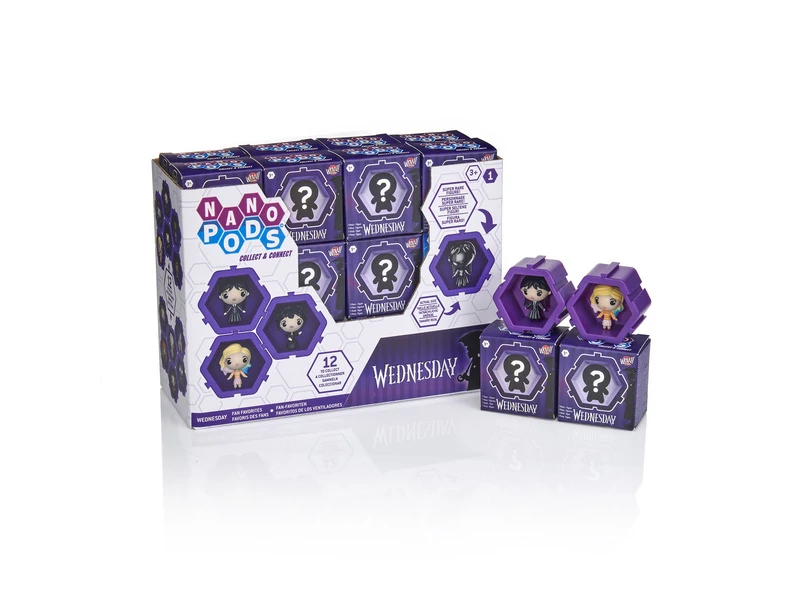 Wednesday NANO POD mini figuraGyűjthető figurák, érdekes csavarral! A Wednesday NANO POD-ok 12 Wednesday karaktert, köztük egy ritka, lila fémes fényű Wednesday-t és egy sötétben világító Joseph Crackstone figurát is tartalmaznak. A hatszögű podokba rejtett figurák egymáshoz is csatlakoztathatók, és akár díszként is használhatók.